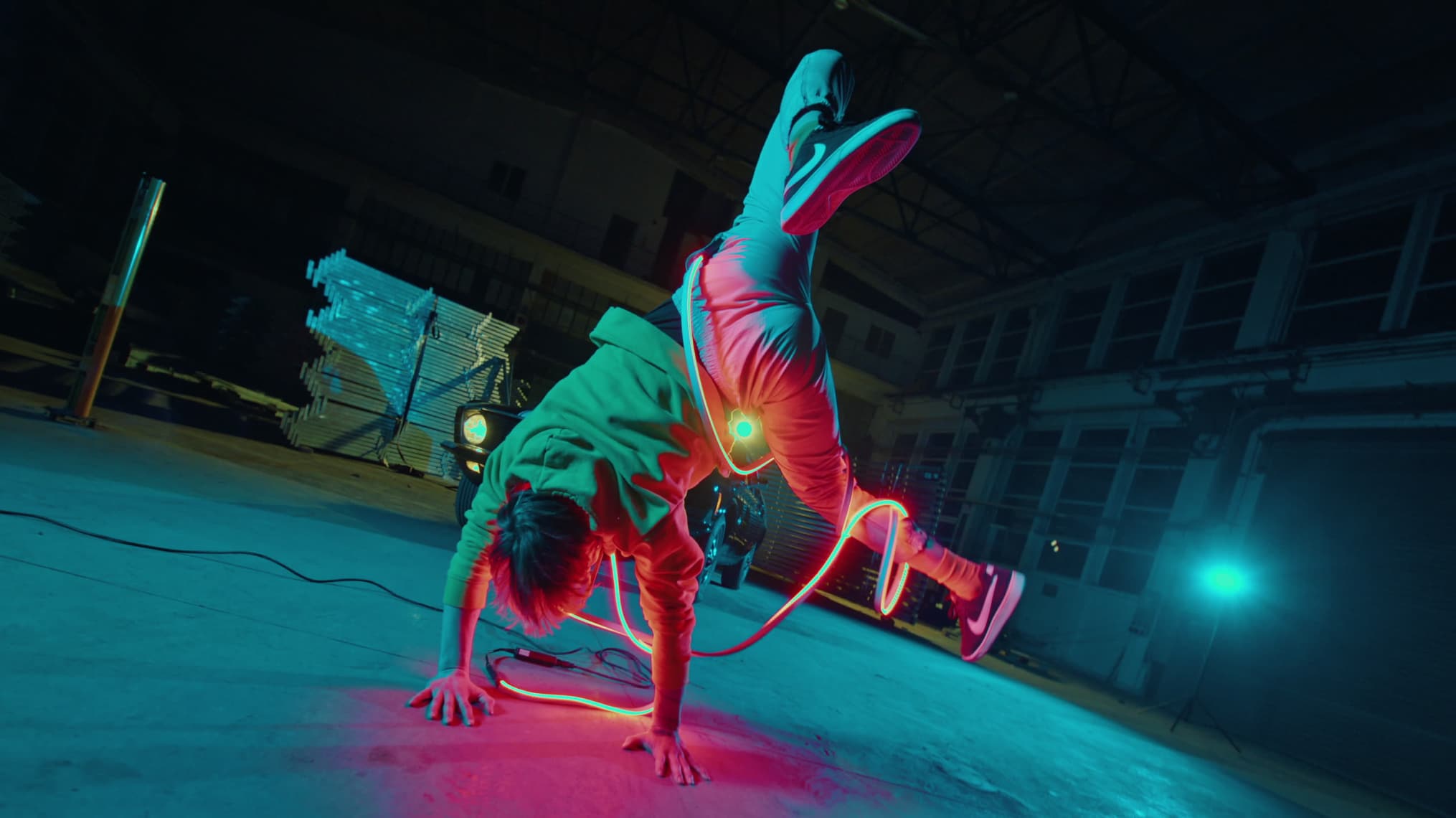 Alexandru put the Sun Dragon through a series of tests to evaluate its versatility and durability. In one test, he positioned the Sun Dragon under a car while a skateboarder and dancer performed. The light’s robust design and resilience were highlighted as the skateboarder executed stunts over and around it, resulting in a dramatic nighttime scene. “I was very surprised that this light still works,” he says. “We really put it through its paces, and I’m very impressed with how durable it is.”