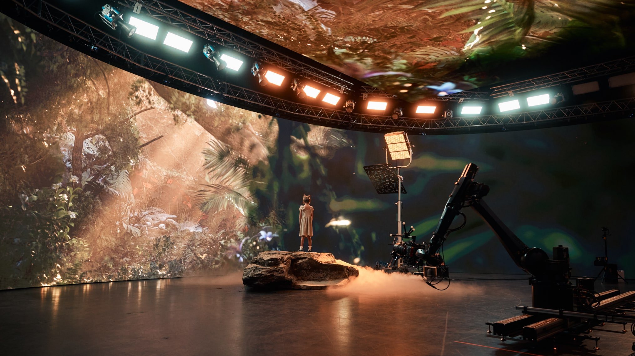 Last year the CTA took over the ARRI Stage London, one of Europe’s largest fixed virtual production facilities, to bring to life the ideas of the WPP apprentices. The ASL volume is absolutely vast, with the main in-vision curved wall measuring 30m wide by 5m high. It comprises 600 panels with a total resolution of 12,960 x 2,160. The ceiling, back and side screens add another 752 panels!
